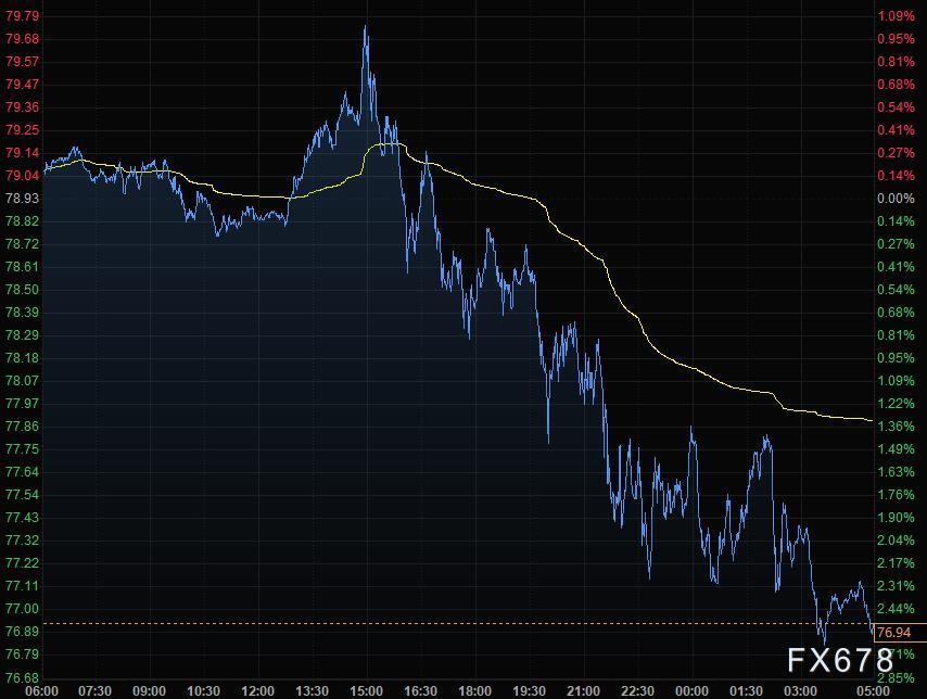 在美国库存增加以及俄罗斯暗示准备好缓解全球能源危机之后,油价创出两周最大跌幅,美油跌逾2%,刷新近二日低点至76.83美元/桶。