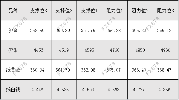 沪金、沪银、纸黄金、纸白银阻力支撑位
