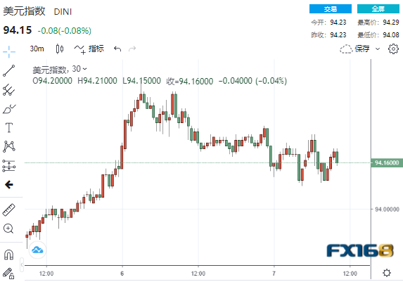 在美股强势上涨之际,美元的涨势暂歇:衡量美元兑一篮子其他六种主要货币表现的美元指数在过去两个交易日上涨近0.5%后,日内小幅下跌,现交投于94.15一线。该指数上周创下了一年高点94.50。