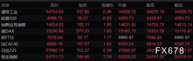 美股收盘情况:标普500指数上涨0.8%,报4399.76点;道琼斯工业平均指数上涨1%,报34754.94点;纳斯达克综合指数上涨1.1%,报14654.02点;纳斯达克100指数上涨0.9%,报14897.13点;罗素2000指数上涨1.6%,报2250.094点。
