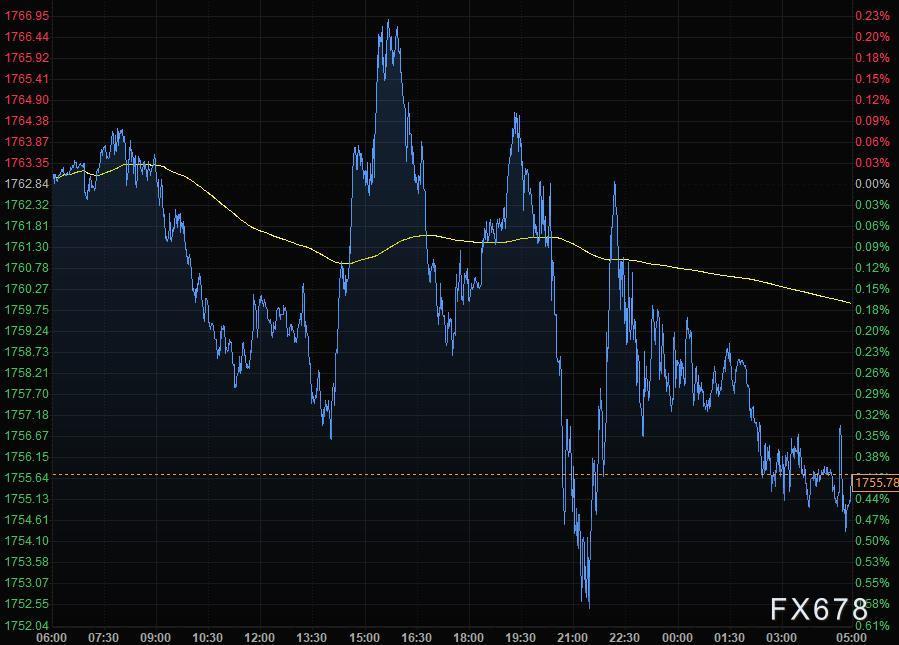 金价周四下跌,现货黄金收跌0.40%,报1755.78美元/盎司,因在周五公布月度就业报告之前,美国公布上周初请失业金人数下降,这提振了美债收益率,并引发了对美联储可能很快开始缩减经济支持的押注。