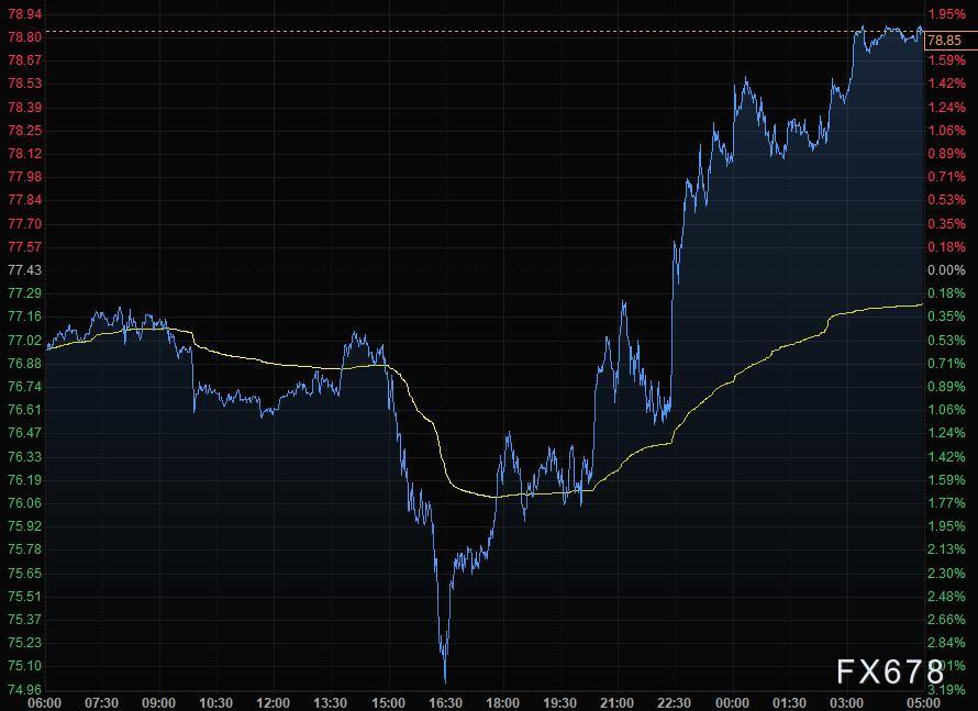 油价大幅反弹,美油一度较日低回升近4美元,至78.89美元/桶,尾盘收涨1.83%,报78.85美元/桶,因美国能源部周四表示,目前没有释放战略石油储备以遏制汽油价格上涨的计划。
