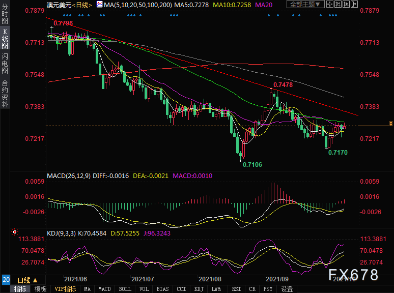 周四(10月7日)在0.7300上方再次遇阻后,澳元兑美元在欧洲市场缩减涨幅,尽管市场风险偏好情绪回暖。