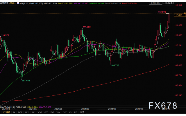 北京时间10月11日16:03,美元兑日元报112.87/89。