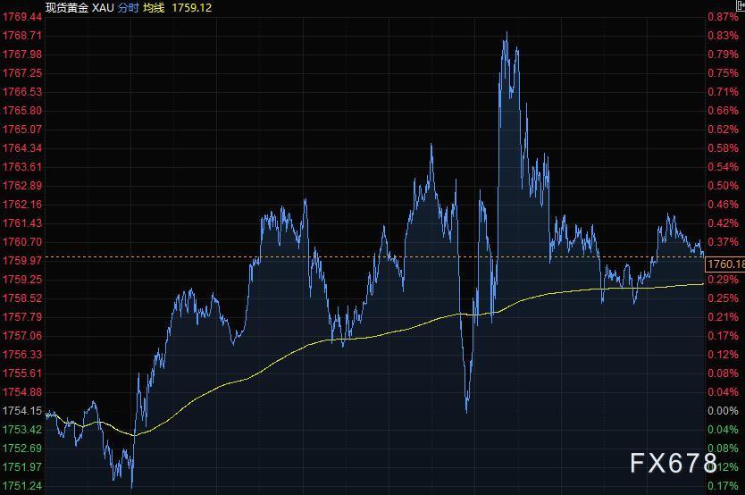 金价周二上涨,现货黄金收于1760美元之上,通胀担忧加剧削弱了风险偏好,提振了对避险黄金的需求,但美元走强限制了涨幅。