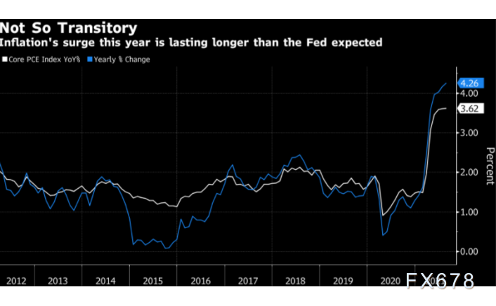 截至8月份的12个月里,美联储青睐的美国通胀率指标达到4.3%,远高于美联储2%的目标。随着疫情消退,包括鲍威尔在内的美联储官员已经将物价压力高企归因于供应链瓶颈和与经济重新开放相关的其他暂时性因素。
