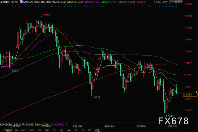 周二(10月12日)欧市盘中,英镑兑美元窄幅震荡,多头始终无法将汇价维持在1.36关口上方。