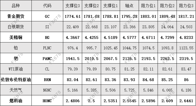 外盘黄金、白银、原油等商品期货阻力支撑位