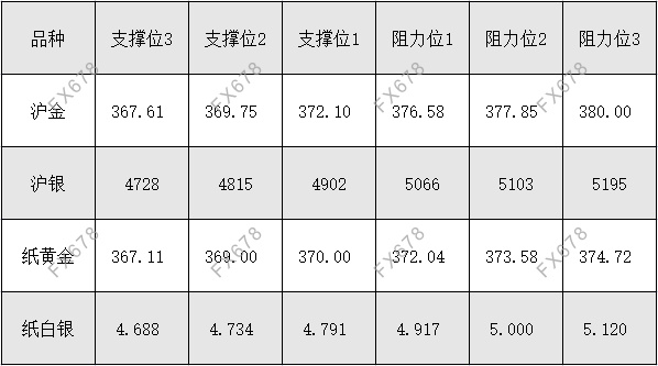 沪金、沪银、纸黄金、纸白银阻力支撑位
