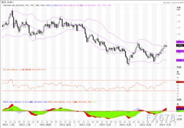 日图显示,澳元/美元可能接近整理下跌。澳元/美元目前交投于温和看跌的100SMA 紧上方,而技术指标处在超买指标附近,失去看涨动能。澳元/美元在 9 月月度高点 0.7477 面临强阻力,若澳元/美元突破阻力,将接近 0.7600 区域。另外,若澳元/美元跌破 0.7330 并跌至 0.7200区域后澳元/美元转为看跌。