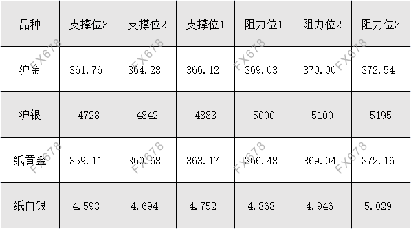沪金、沪银、纸黄金、纸白银阻力支撑位