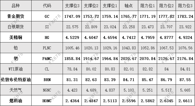 外盘黄金、白银、原油等商品期货阻力支撑位