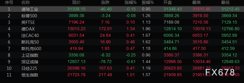 美股收盘情况,道琼斯工业指数下跌0.15%,至31338.15点;标普500指数下跌0.08%,至3899.38点;纳斯达克指数上扬0.12%,至11635.31点。