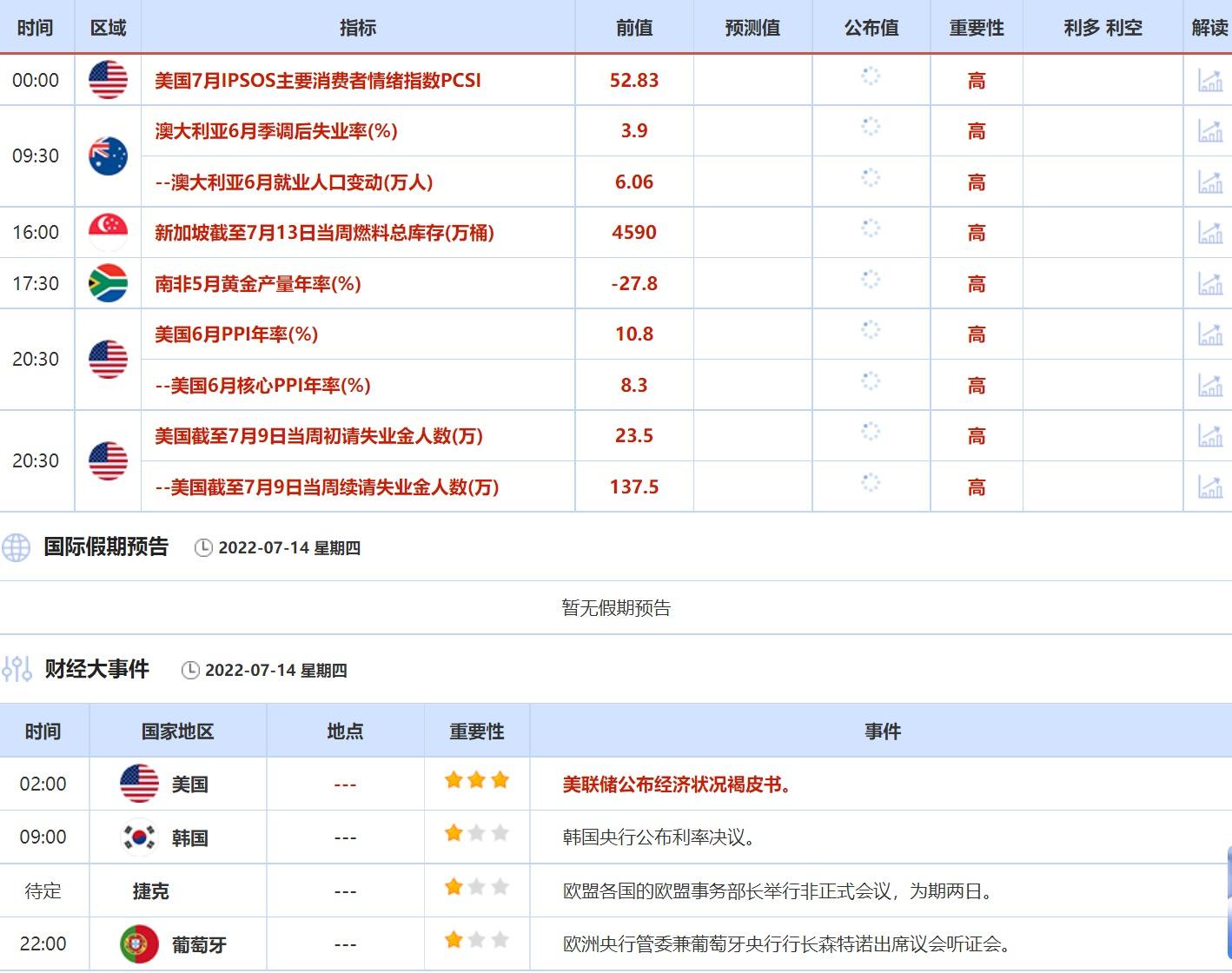 7月14日,美联储将发布经济状况褐皮书,也需引起投资者重视。
