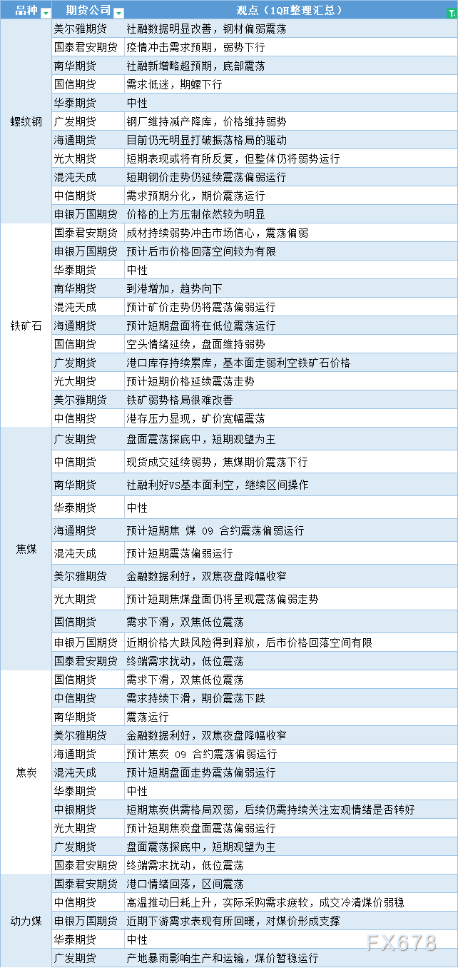 期货公司观点汇总一张图:6月26日黑色系(螺纹钢、焦煤、焦炭、铁矿石、动力煤等)