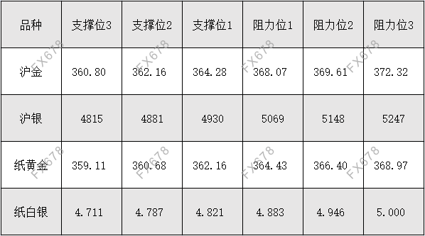 沪金、沪银、纸黄金、纸白银阻力支撑位
