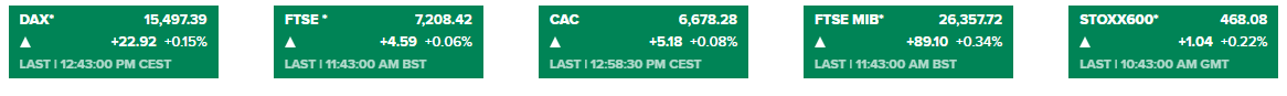欧美股市:Yahoo finance报道指出,欧洲股市周二开盘相当平静,盘中走高。英国富时100指数开盘后下跌,跌幅接近0.1%,巴黎CAC指数持平,德国DAX指数也停滞不前。截止发稿,欧洲股市主要股指悉数上涨,如图所示: