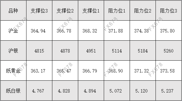 沪金、沪银、纸黄金、纸白银阻力支撑位