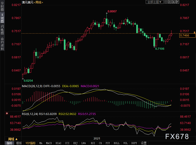 在此情况下纽元本周涨幅大于澳元,纽元本周上涨1.26%至0.7156,澳元本周上涨0.61%至0.7466。
