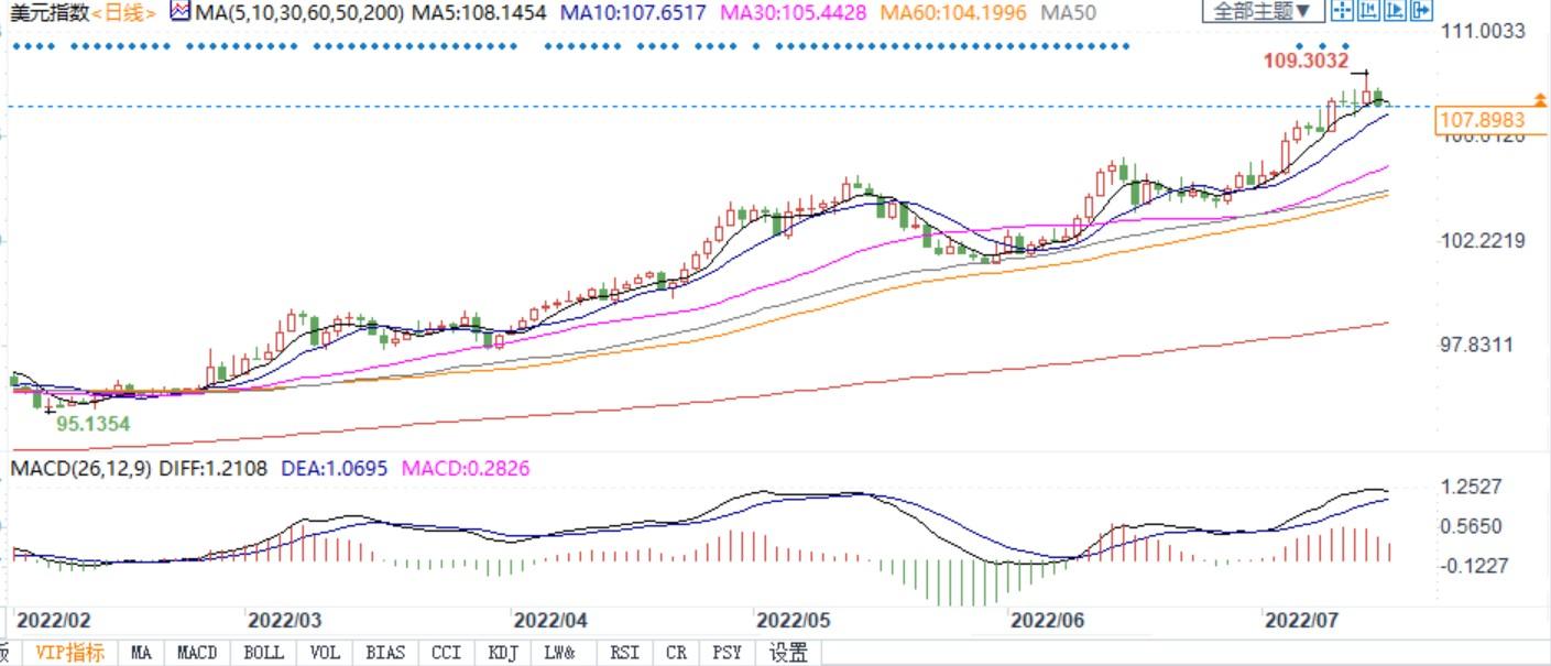 北京时间7月18日7:42,美元指数报107.88。