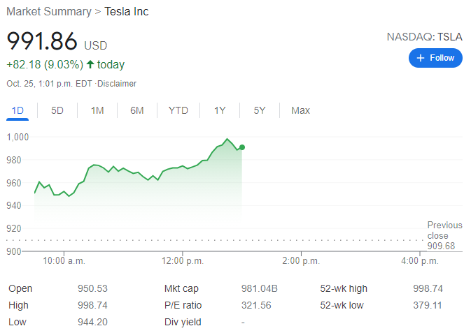 此外,摩根士丹利将特斯拉的目标股价从900美元上调至1200美元也使得特斯拉受到提振。上周,特斯拉公布了创纪录的收入和利润。