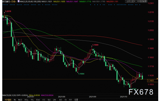 近期欧元兑美元走势缺乏明确的方向,周一(10月25日),随着美元指数走高,欧元兑美元下跌0.34%,一度接近1.16水平。