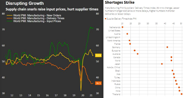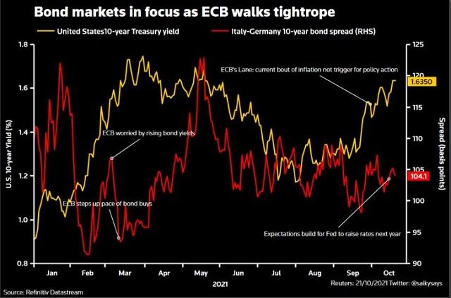 供应瓶颈和能源价格飙升意味着,自欧洲央行9月会议以来,经济逆风已变得更加强劲。德国已经感受到供应链瓶颈的压力,其顶级经济机构刚刚将2021年的经济增长预期从3.7%下调至2.4%。