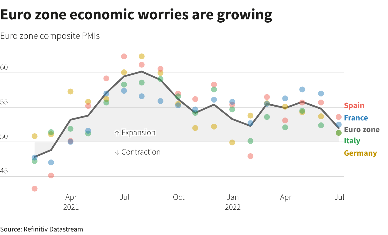 周四的会议恰逢俄罗斯天然气输送到德国的最大管道的年度维护结束日。对俄罗斯断气欧洲的担忧加剧了经济衰退的疑虑。欧盟执委会目前预计欧元区经济明年将增长1.4%,低于此前预测的增长2.3%。