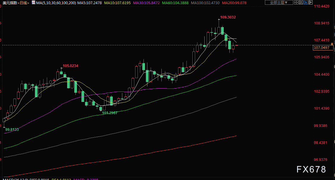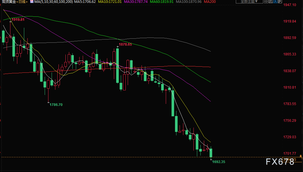 周四(7月21日)亚市盘初,美元交投于107.05附近,金价周三下跌近1%,重回1700整数关口下方,创自3月底以来新低至1692.35美元,尽管美联储官员已经淡化了加息100个基点的观点,但因交易员获利了结,金价反弹失败;油价周三下跌,受累于经济可能放缓的担忧,从而导致能源需求减少。日内聚焦日本央行和欧洲央行利率决议。