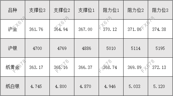 沪金、沪银、纸黄金、纸白银阻力支撑位