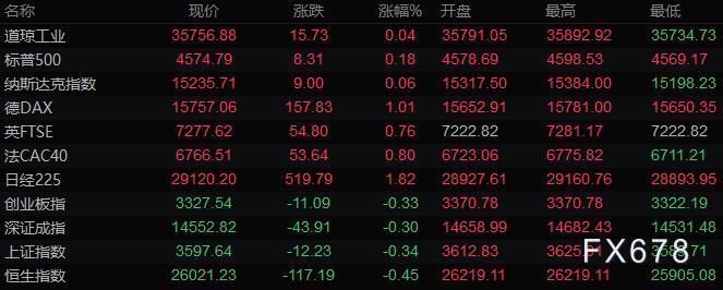 美股收盘情况:标普500指数上涨0.2%,报4574.77点;道琼斯工业平均指数基本持平,报35756.42点;纳斯达克综合指数上涨0.1%,报15235.71点;纳斯达克100指数上涨0.3%,报15559.49点;罗素2000指数下跌0.5%,报2300.647点。