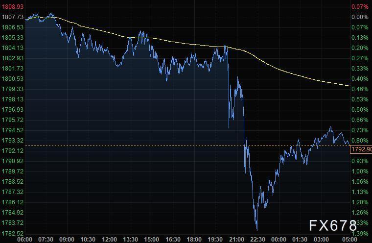 现货黄金周二收跌0.82%,报1792.90美元/盎司,盘中跌幅一度达到1.4%,结束了此前连续五个交易日的涨势,原因是美元走强,且强劲的公司业绩提振了投资者对风险较高资产的需求。