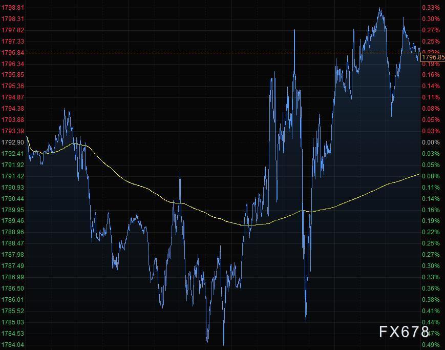 现货黄金小幅收涨,报1796.85美元/盎司,随着对经济增长的担忧再度升温,全球债券收益率走低,推动黄金价格收复了早盘跌幅;基准30年期美国国债的收益率周三下跌超过10个基点,全球债券收益率曲线趋平,暗示投资者对经济增长可能放缓感到担忧,不过这对于黄金是个利好,因为投资者在经济动荡时期往往为避险而买入黄金。
