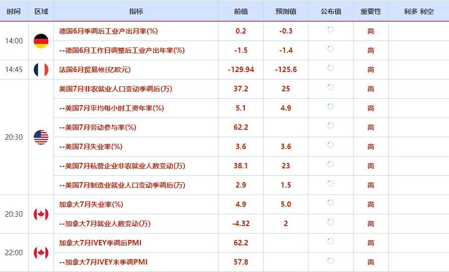 投资者将在周五看到体现美国经济状况的一个关键数据,届时劳工部将报告7月就业数据。美国就业市场继续强劲的迹象可能会增强对美联储收紧货币政策的预期。
