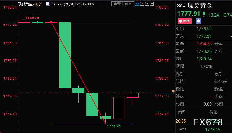 北京时间周五(8月5日)20:30,美国劳工部公布的7月非农就业报告大幅向好,失业率进一步走低。截至发稿,现货黄金急跌15美元至1773.26美元/盎司。