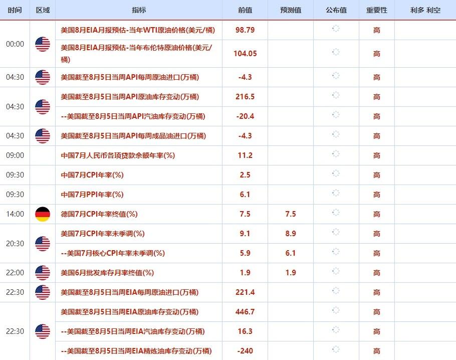 ③8月10日(周三)关键字:美国7月CPI,美国截至8月5日当周EIA原油库存变动