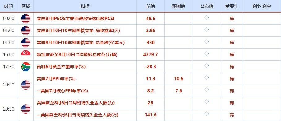 8月11日,明尼阿波利斯联储主席卡什卡利就通胀进行讨论。此外,IEA公布月度原油市场报告,OPEC公布月度原油市场报告,料影响市场走势,投资者也需引起重视。