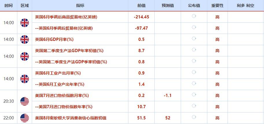 ⑤8月12日(周五)关键字:英国6月GDP