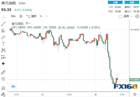 美元承压重挫至一个月低位93.28,较日高回落近70点。随着美元的大跌,英镑、日元、澳元、纽元等G10货币纷纷走强。