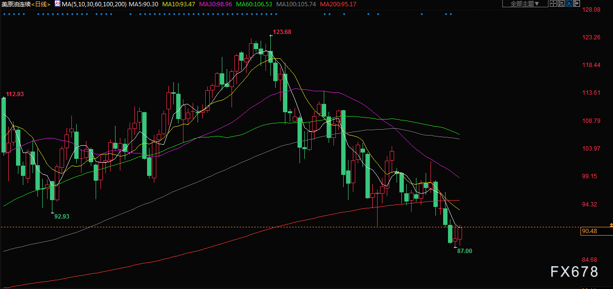 上周,对经济衰退可能削弱能源需求的担忧推动近月布伦特原油期货下跌13.7%,至2月以来最低。这是布伦特原油自2020年4月以来的最大单周跌幅,美国原油下跌9.7%。