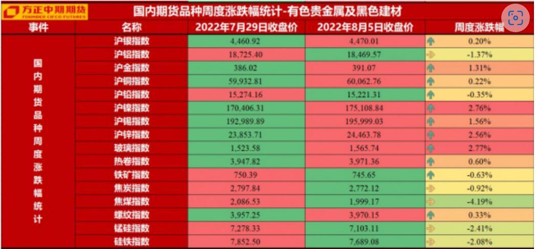有色金属板块:【有色金属】本周有色金属先抑后扬,锌反弹较强劲,铜表现积极,镍波动依然最大,铅窄幅整理,铝脱离低点收跌。近期各国制造业指数放缓引发需求忧虑有所回升,在高通胀下各国加息步伐延续,而美元指数近期高位回落在105-110间震荡反复暂延续。此外,地缘政治问题对市场影响暂短期,而能源问题对部分有色金属产量的影响,以及普遍的低库存继续对有色形成支持,宽幅波动延续。国内政策未有大幅加码迹象,但需求边际修复仍在进行。基本面方面,铜冶炼端进入8月份,检修企业将陆续复工,并在高加工费的提振下产量进一步提升。下游铜材、线缆开工较有所改善,但仍不及往年平均水平,而7月制造业PMI意外萎缩、本土疫情的突发也打击市场信心。短期铜价可能随着地缘风险暂时解除而有所反弹,不过仍难改变中期熊市周期的趋势,操作上以逢高沽空为主,整体上控制仓位、严格止损。。欧洲冶炼再度减产的预期是引发此轮锌价上涨的主要原因。近期嘉能可警告称,欧洲的能源危机已经对锌供应构成重大威胁,在欧洲的其他冶炼厂几乎没有实现盈利。欧洲地区冶炼产能占比约全球的18%,目前有约一半的产能仍处于错峰生产的状态,如果进一步减产则将对供应造成重大影响。展望后市,锌价短期或在供需格局偏紧和欧洲减产预期下维持强势,不排除海外极低库存酝酿极端行情的可能性,不过鉴于当前宏观不确定因素仍多,追高需谨慎,可考虑买入虚值期权对风险敞口行情进行保护。铝供给7月又有部分新投以及复产产能开工,未来还将继续增长。需求方面,下游加工企业开工情况有所分化。房地产上游型材以及板带开工率维持较低水平。未来进入传统淡季,部分企业已计划放假,需求端难见利好。现货市场成交也普遍贴水,市场情绪较为悲观。出口方面,由于沪铝比值再度回落,原铝进口窗口再度关闭,且有利于出口。社会库存小幅累库,利空铝价。整体上看,沪铝盘面受宏观面影响涨跌互现,由于宏观事件不确定性较强,建议暂时观望为主。08合约上方压力位20000,下方第一支撑位17000。期权方面,建议可以卖出深度虚值期权以赚取额外权利金收益。。镍保持高波动。供给端来看,电解镍国内生产料小幅回升,近期随着进口货源增加,国内镍升水有所走弱,但整体仍是低库存水准。镍生铁国内减产,进口到货料会增加,进口镍生铁成交价下移,仍会压低镍生铁重心,对镍价底部支撑有所走弱。从需求端来看,不锈钢需求不佳不过有逢低买货,而三元材料开工率回升,硫酸镍价格趋稳需求向好。镍价在宏观情绪波动中暂转向偏强震荡,2209合约近期料延续16-18.5间偏强震荡,有色金属整体反弹意愿继续影响镍表现,短多长空思路暂延续。供给方面,国内锡冶炼厂从7月底已经开始逐步复产,精炼锡供给量将持续增加。6月精炼锡进口量环比显著回落,因目前进口窗口持续关闭,后市预计将继续回落。需求方面,不同行业表现差异较大,光伏行业保持高增速,锡焊料企业出口订单减少,且国内淡季效应显现,下降幅度超市场预期。疫情防控政策调整,稳增长预期增强,企业复工复产加快,且锡价回落,需求仍然偏弱但边际改善,库存方面,交易所库存在近日小幅减少,smm社会库存环比小幅去库,也对锡价形成一定支撑。生产企业在8月预计集中复产,供给压力将会凸显,锡价关注18万支撑强度。近期铅锭供应恢复,现货铅普遍转为贴水,沪铅从Back转为Contango结构,使得铅价较长时间僵持。下游需求方面,铅蓄电池企业需求有所增加。库存阶段降库,而除广东江浙以外可能有回升之势。铅2209合约在14700-15300之间震荡格局暂延续。