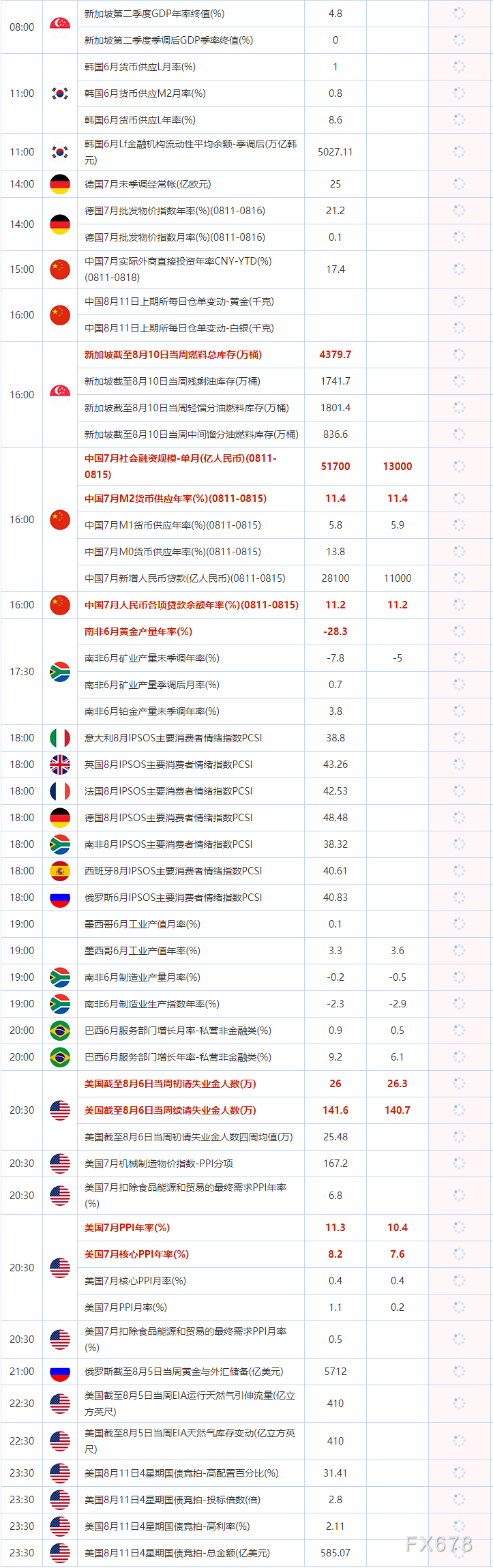 周四(8月11日),需重点关注美国7月PPI年率、美国截至8月6日当周初请失业金人数、IEA公布月度原油市场报告、OPEC公布月度原油市场报告。日本东京证券交易所因为山之日,休市一日。