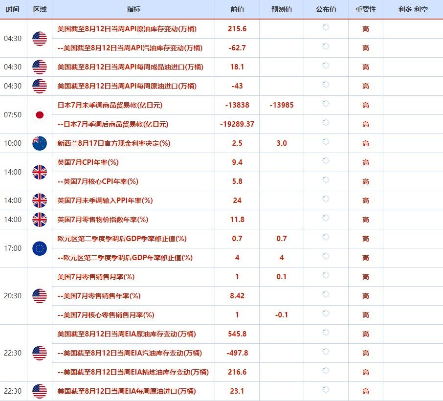 ③8月17日(周三)关键字:英国7月CPI,美国7月零售销售,新西兰联储利率决议