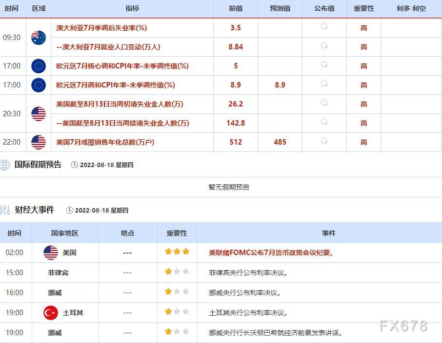 ④8月18日(周四)关键字:欧元区7月CPI,美国截至8月13日当周初请失业金人数,美联储7月货币政策会议纪要