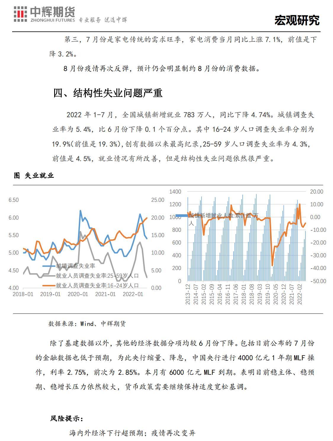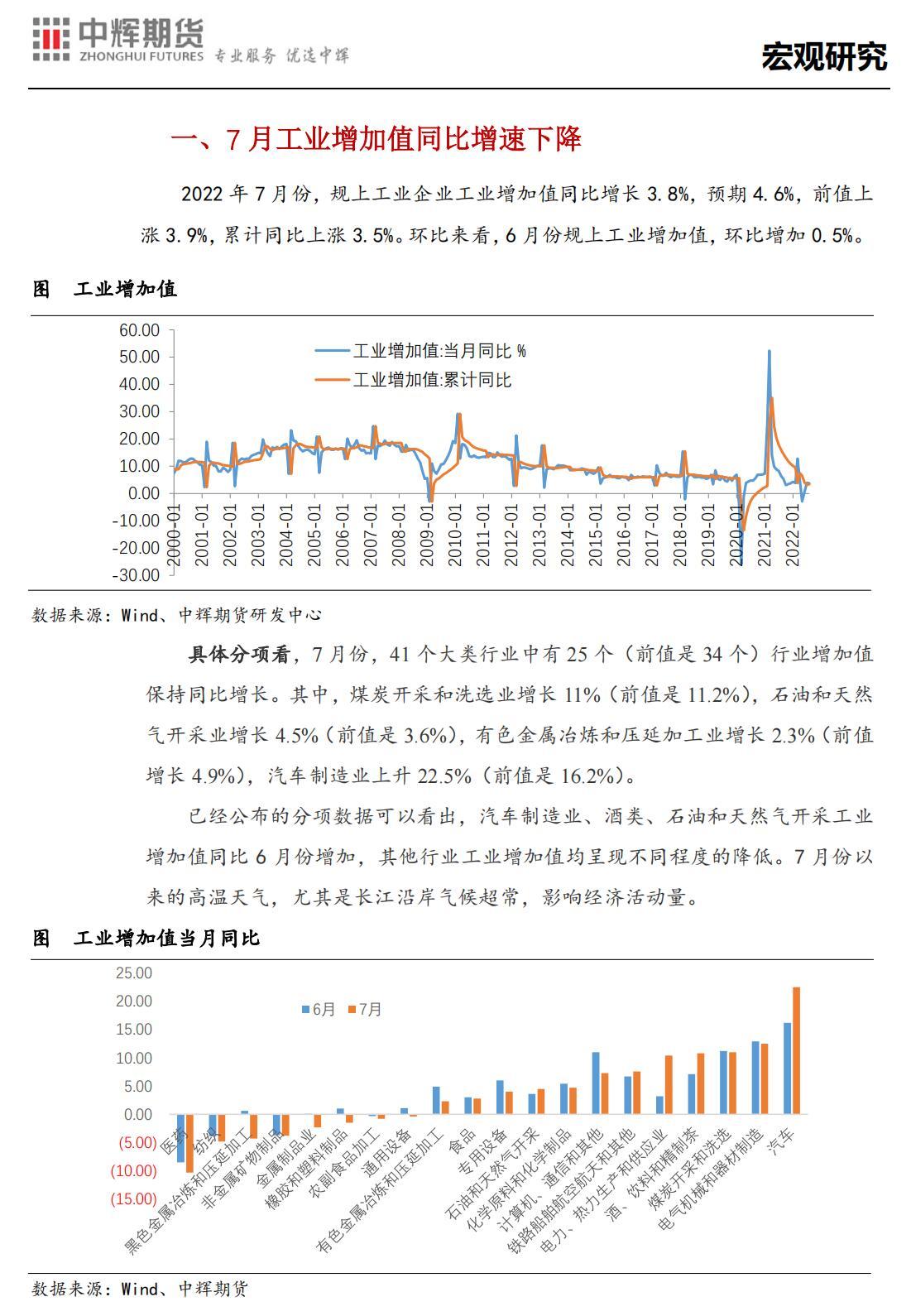 中辉期货股指日报:央行缩量降息应对待-2022年7月宏观经济数据解读
