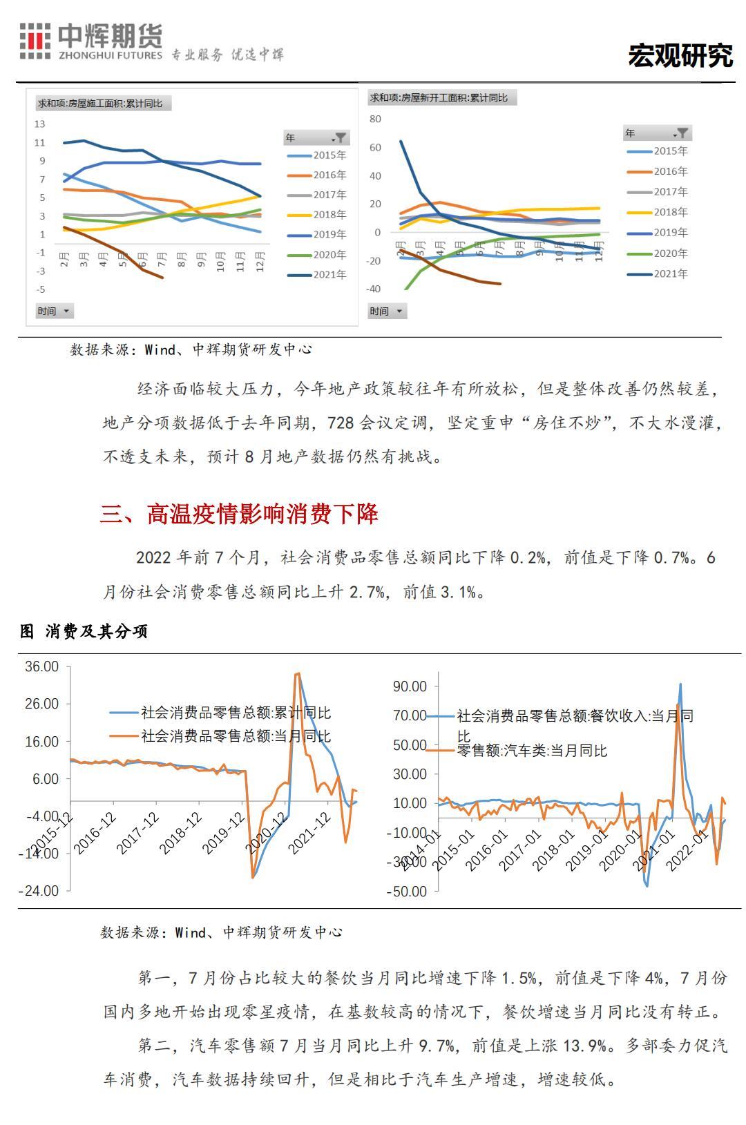 中辉期货股指日报,政策真空,7月份经济数据回落,央行缩量降息应对待-2022年7月宏观经济数据解读。
