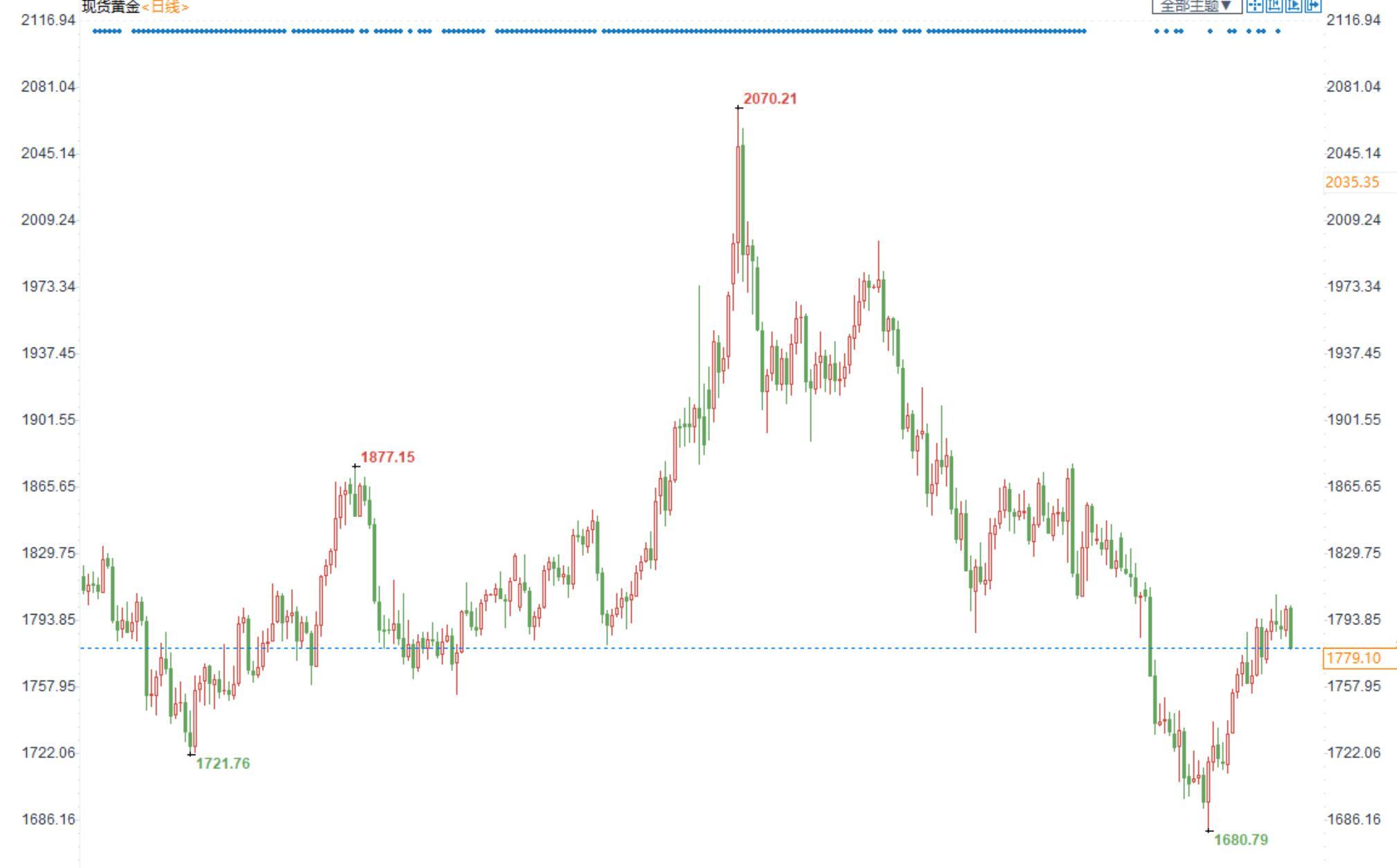 【今日行情】金银均收涨。AU2212收盘价为392,收涨0.32%;AG2212收盘价为4532,收涨1.36%。8月13日伦敦金再度冲击1800关口未果,今日单边走弱,技术上存有明显压制。美元指数连续第二日走强,接近突破106,短期对金银压制有所增强;十年期美债收益率重回2.8%上方,实际利率端强于通胀预期端,短期对金银压制有所增强。