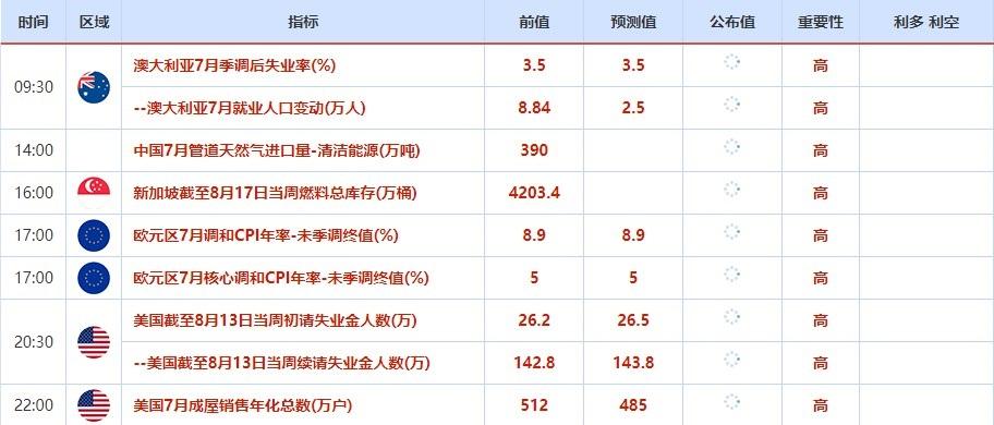 ①英国央行鹰派加息后英镑走强,欧元兑英镑承压,预计欧元兑英镑将回落至0.8350。隔夜指数掉期显示,市场对2023年3月英国央行政策利率的定价已从7月底的2.72%变成昨天的3.40%左右。在此基础上,英国7月通胀率同比增速达10.1%,超出预期并创40年新高。天然气价格若再上升可能使欧元兑英镑一路回落到0.8350;