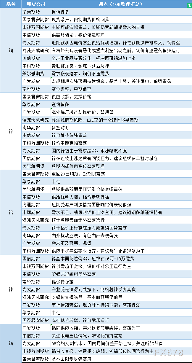 期货公司观点汇总一张图:6月26日有色系(铜、锌、铝、镍、锡等)