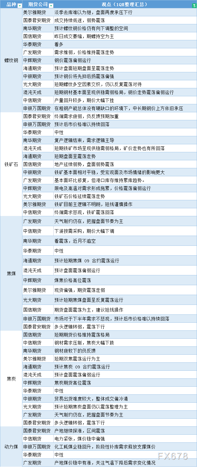 期货公司观点汇总一张图:6月26日黑色系(螺纹钢、焦煤、焦炭、铁矿石、动力煤等)
